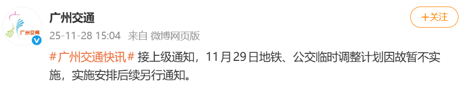 11月29日,广州地铁、公交临时安排方案因故暂不