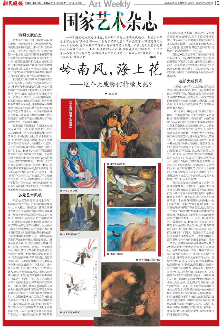 司徒乔《放你的鞭子》关子兰《少女像》林风眠《青衣女子》关良《三击骨魔》李铁夫《盘子上的鱼》《檀花木》《山水》于本《玩世间苦》中国现代油画史的演变都离不开上海之间的联系。目前正在中华艺术宫展出的“生活新——广东美术百年展”不仅呈现出从现实主义到现代主义的多元风格,而且深刻揭示了这种联系。广东是无数艺术先驱的故乡,是创意的沃土;上海是他们发光发热、实现抱负的广阔舞台。一代又一代关东油画家的才华和志向,在中国艺术史上编织了一段感人至深的“两城故事”。展会自开展以来,人气持续高涨。 ——编辑 ◆张丽星,炙手可热油画发展的热点。广东是中国最早留下欧洲油画足迹的地区。中国油画史专家刘纯认为,油画最早是由欧洲传教士带到广东的。后来的发展,出现了南北统一与对抗的局面。北方皇帝利用传教士画家使北京成为油画中心。在南方口岸广州,随着经济发展和文化交流的增加,私人创作的油画数量在较短时间内大幅增加并逐渐老化,形成了南方油画的中心。其中,广东的“外销画”在中国油画的发展中占有重要地位,影响较大。然而,直到20世纪初,西方油画才真正成为现实。作为独立完整的艺术品进入中国,并不断融入中国的民族文化和本土审美,在不同时期表现出不同的创作使命、创作功能、社会影响和艺术特色。无论是当时流行于欧美、日本的现实主义、印象主义、后印象主义,还是各种复杂的现代主义流派,几乎都在中国有所体现,而这很大程度上得益于大批留学生出国学习艺术。中国早期油画家大多有赴欧美、日本学习油画艺术的经历,而广东学生是当时海外学习油画的最大群体。留洋的广东艺术家回国后,在广州、上海、北京、南京、杭州、苏州、香港、澳门等各个城市播撒了油画的种子。他们活跃创建、建立艺术学校和社团,培养学生,举办艺术展览,促进了中国油画艺术的创作、传播和人才培养。当然,广东艺术家努力工作的地方是广东本身。 1921年,一批广东留美学生在广州组织成立了南方第一个重要的西画艺术社团——持社画会,极大地扩大了油画在广东的影响。 1922年,国立广州市立艺专成立,徐重庆任校长,留日胡根田任教务主任,留学墨西哥、美国的冯刚白任总主任,一批“海归”任教师,造就了广东油画人才辈出。此后,各种艺术团体和私立艺术学校在广东特别是广州市蓬勃发展,大、中型艺术院校纷纷涌现。小型油画展也纷至沓来,广东自然成为中国绘画发展的热点。写实主义的多元艺术风格一直是20世纪上半叶广东油画创作的主线。广东油画家拥抱时代、介入社会、反映现实,使写实油画成为传达人文精神、表达思想的重要载体。曾留学英国、美国的李铁夫是中国第一位出国学习油画艺术的广东学生。他也是中国第一位掌握纯西方写实油画技术的油画家。来自李铁夫不同时期创作的《盘鱼》、《未完成的老人肖像》、《画家冯刚肖像百幅》以及此时尚未在上海展出的《刘素伟肖像》等油画作品,我们可以一窥他精准严谨的造型能力和较高的综合能力。其作品色彩细腻,体现了写实油画淡雅、细腻、生动的艺术品质。李铁夫一生追随孙中山,艺术与革命自然成为他一生的主旋律。他努力学习西方油画艺术,并将卖画所得捐献给革命。留学加拿大的广东油画家的名作《羞辱世界》,此时也出现在中华艺术宫。于本擅长描绘乞丐、菜贩、车夫、街头艺人、苦力等社会底层人物。 《展现人间的辛酸》用简洁、精准、有力的笔触和古典油画的“酱油色”,塑造了一个在外劳苦劳后用二胡表达悲伤声音的形象:三角形构图人物裸露的肌肉与紧绷的钢琴弓形成强烈的对比,营造出独特的悲伤氛围。广东画家司徒乔因与鲁迅的关系而闻名。这位留学法国的广东油画家,以1940年创作的代表作《放下你的鞭子》引起了上海观众的关注。当时,司徒乔在新加坡观看了演员金山、王英表演的《放下你的鞭子》。他深受感动,当场画了一幅草图。后来他邀请演员到工作室当模特,创作了这幅著名的油画。作品反映了艺术家对祖国的怀念和对日本侵略者的愤怒。画面中人物刻画深刻,深度、视野、构图都独一无二,仿佛是用饱满的情感完成的。当然,20世纪上半叶的广东油画并不只是写实主义路线。本次展览呈现了当代艺术家的杰作广东油画家谭华木的《街景》、赵寿的《迈向新生活》、杨秋仁的《骑楼下》等现代主义风格,展现了广东油画的现代主义风格,体现了油画艺术多元化的艺术风格。 20世纪20年代和1930年代,上海闪耀,成为全国艺术市场、艺术展览、艺术出版、艺术传播最重要的平台。上海的艺术界也闪耀着许多优秀的广东油画家。许多留学归国的广东油画家首先选择上海生活、在上海施展技艺、在上海发光发热,推动了上海现代油画艺术的发展。 1931年在上海成立的“觉澜社”是中国第一个有明确宣言的现代社团。现代主义西画组旨在以“强烈的激情”和果断的态度介绍西方艺术的最新现代趋势。风格,打破旧艺术和沉闷的创作环境的障碍。虽然他们的艺术语言是西方的、现代的,但他们的内在动力是希望创造一种属于中国、可以与世界沟通的新艺术,追求“新时代精神”。广东油画家梁锡鸿、李中生、赵寿等人自始至终都是觉兰学会的骨干和重要成员。他们所倡导的